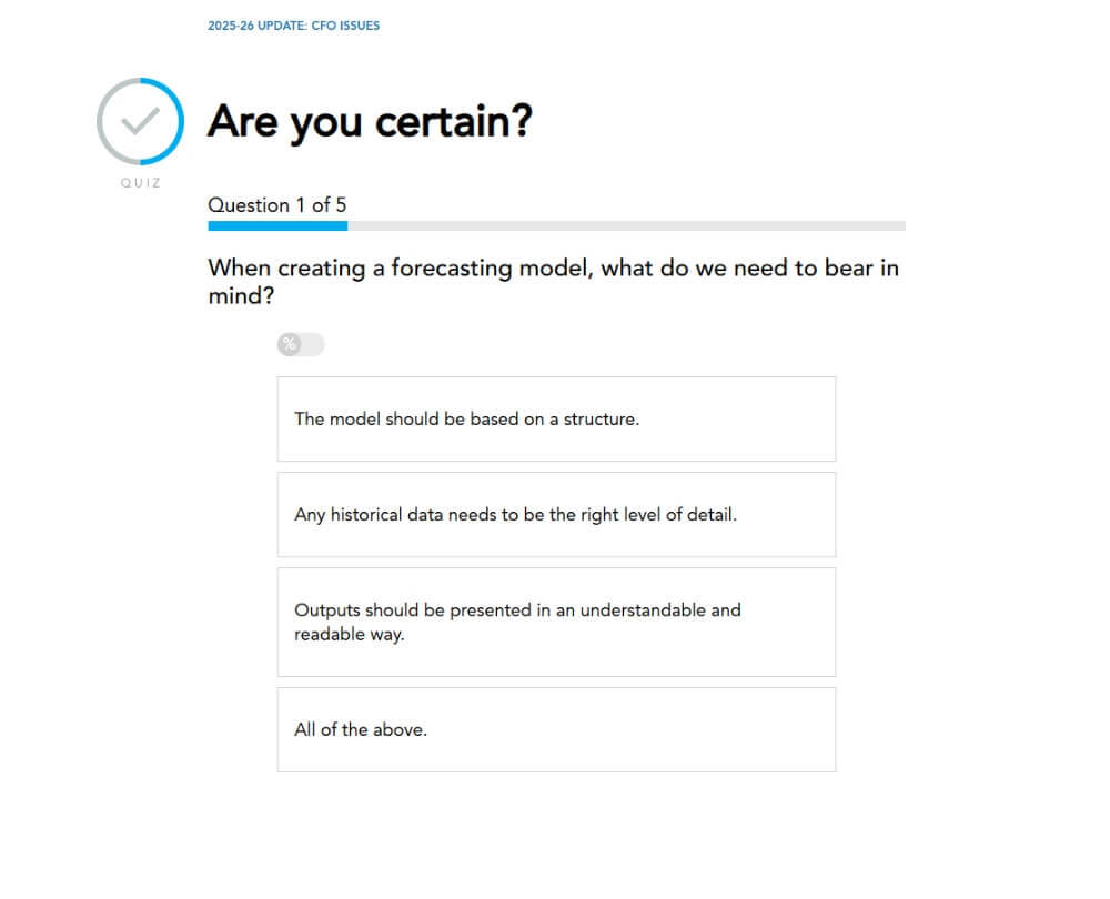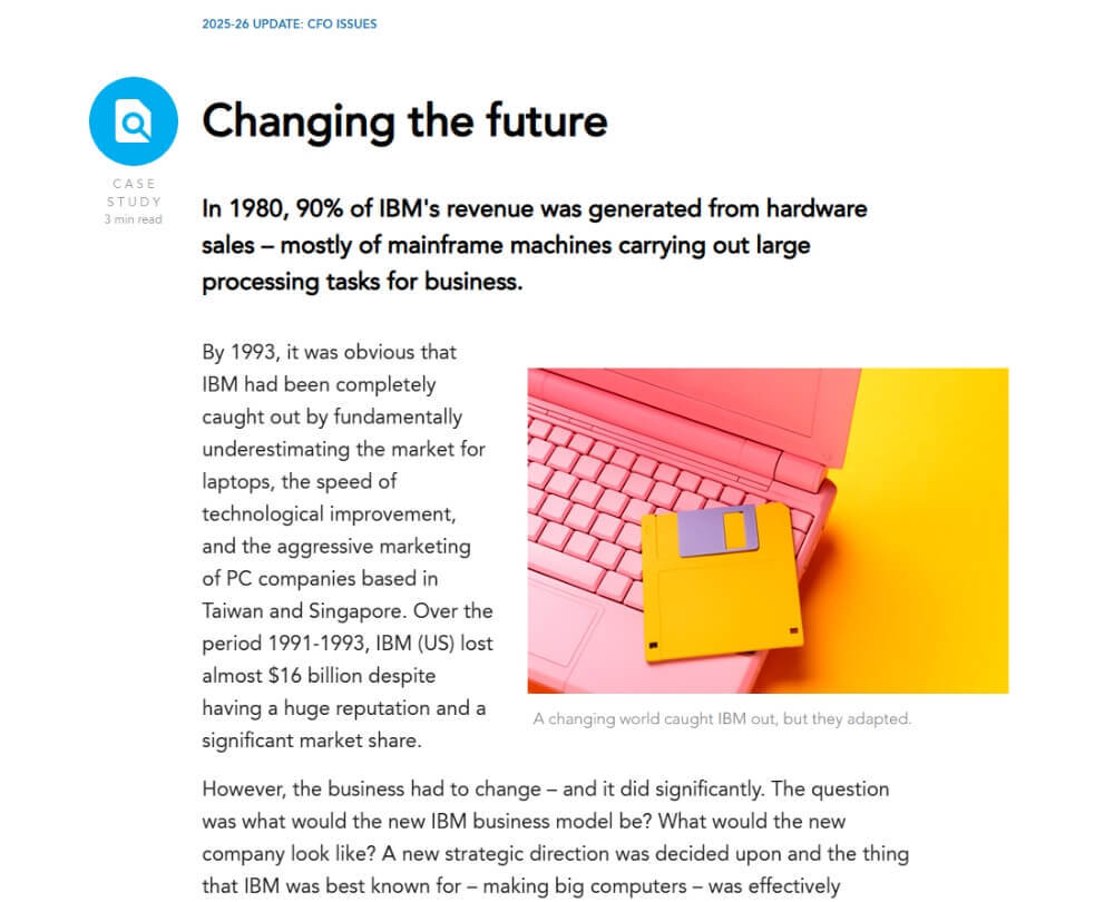 This course explores the most pressing issues impacting CFOs and finance leaders. You’ll begin with a global PEST analysis to identify short-term political, economic, social, and technological trends. From there, you’ll examine practical challenges around forecasting in uncertain times, increasing the agility of governance and risk management, and applying ethical principles to the use of AI within your organisation.