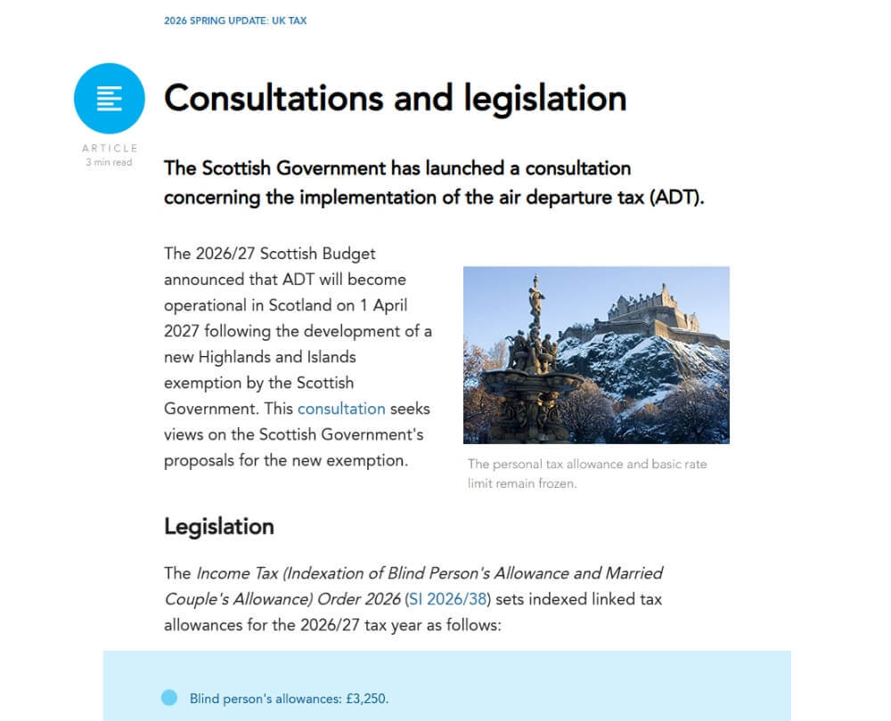 Part of a series of Quarterly UK Tax Updates. Stay up to date with the latest UK tax developments, including the Scottish Budget 2026-27, new work van and fuel benefit charges, APR and BPR reforms, and MTD for Income Tax.