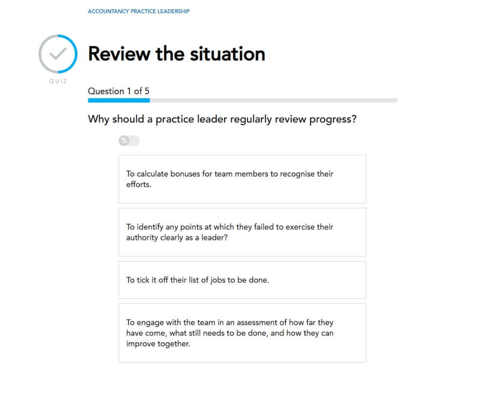 This course explores what good leadership looks like in the context of accountancy. You’ll learn how to create a compelling vision for your practice, structure your team for success, and adopt daily routines that reinforce your goals. The course also covers practical ways to empower others, build trust through active listening, and use feedback and reviews to drive continual improvement.