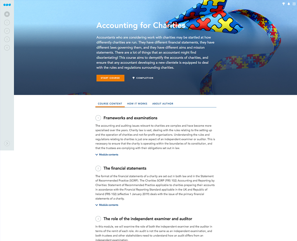 This course demystifies the accounts of charities and ensures you are equipped to deal with the rules and regulations that apply. It gives an overview of charity reporting and highlights some of the pitfalls to avoid when preparing and approving charity financial statements.