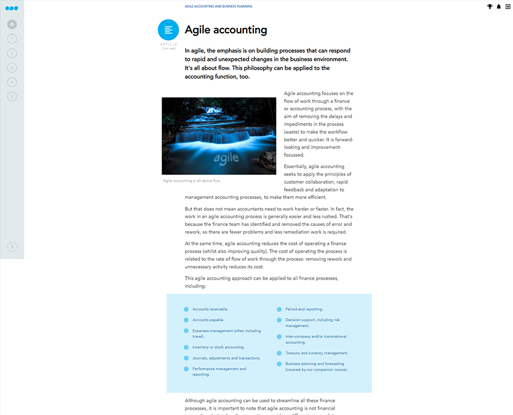 - Understand the principles and characteristics of agile accounting, and the benefits of using them in your role