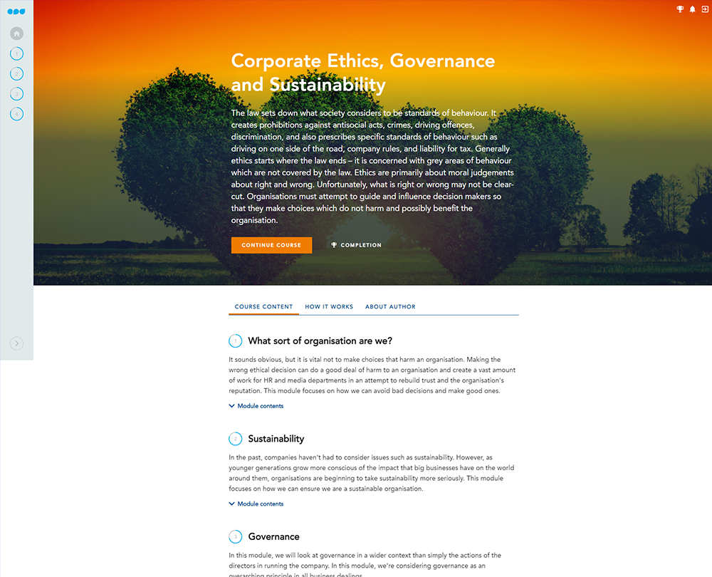 Nowadays, stakeholders want a financially successful business that is also ethical, and sustainable. This course explores key principles involved in ethics, sustainability, and governance and how your organisation can adopt them.