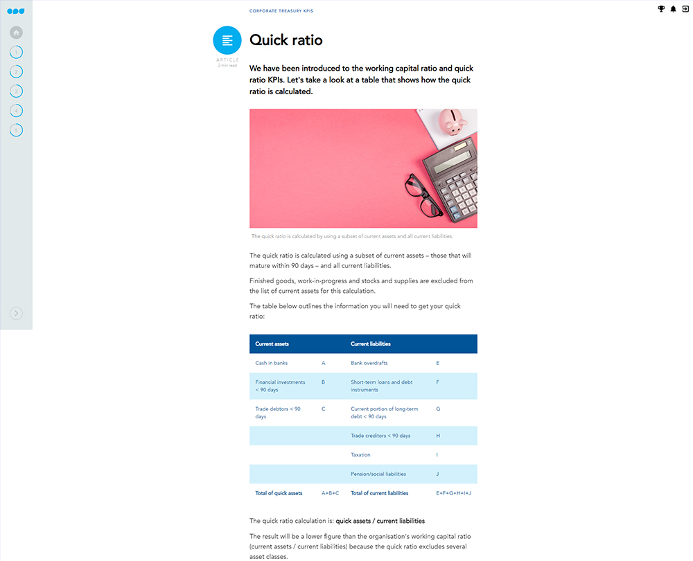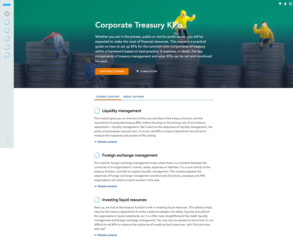 Whether you are in the private, public or not-for-profit sector, you will be expected to make the most of scarce financial resources. This course is a practical guide to the key components of treasury management and setting and tracking appropriate KPIs for each activity.