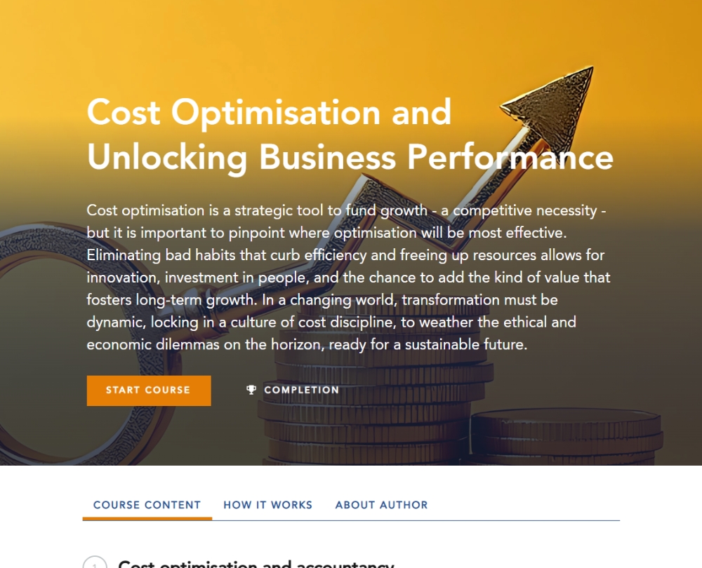This course explores the practical realities of building an organisation-wide cost transformation strategy. It examines common pitfalls, how to engage internal teams in the cost agenda, and how to drive value through supplier relationships. You’ll explore smarter approaches to cost-cutting, and how to align optimisation with business operations.