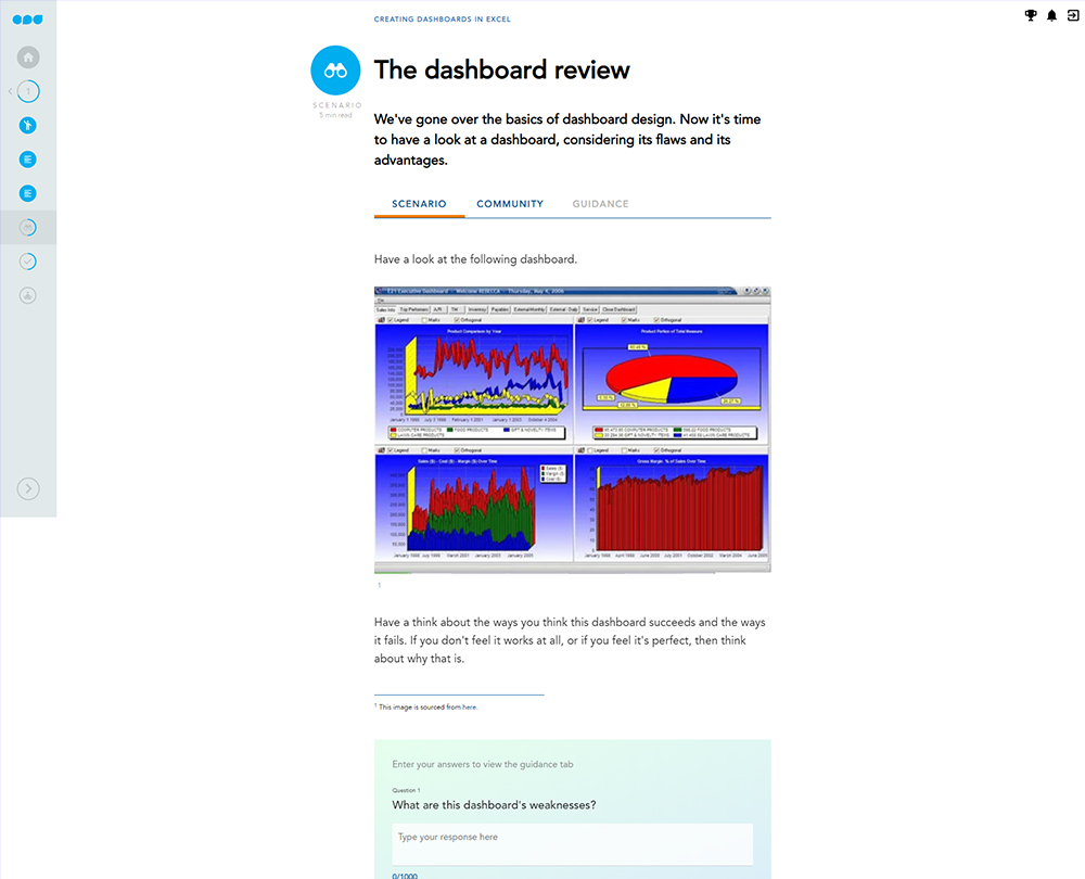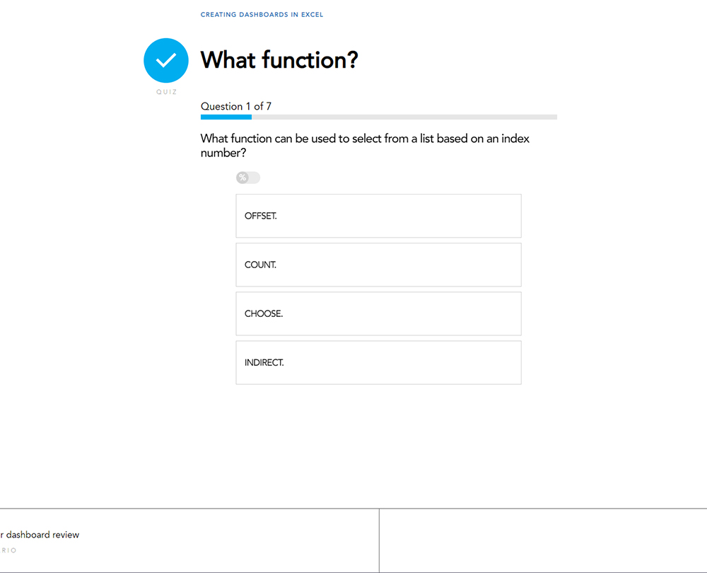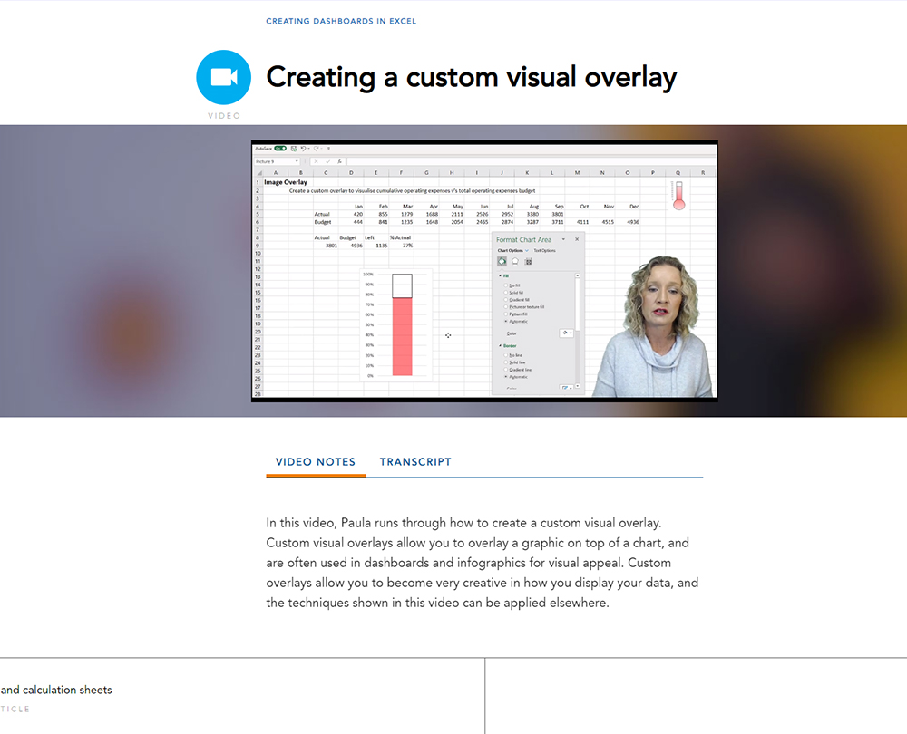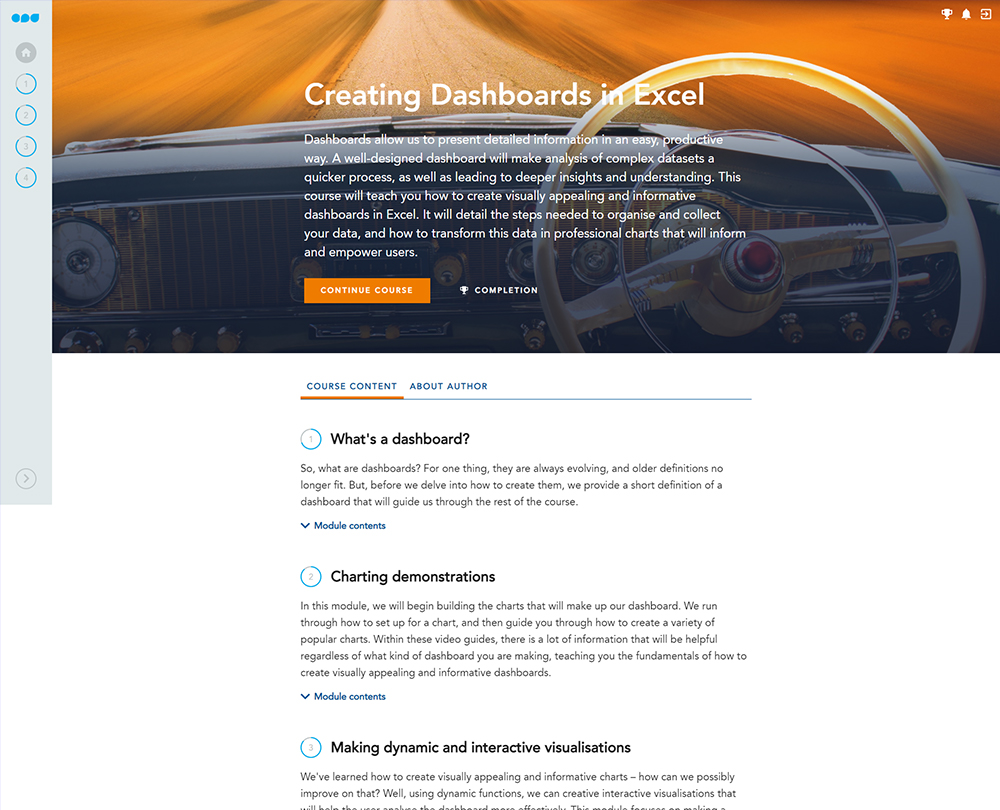 This course will enable you to create visually appealing and informative dashboards in Excel. It guides you through the steps needed to organise and collect your data, and how to create professional charts and interactive visualisations that will inform users.
