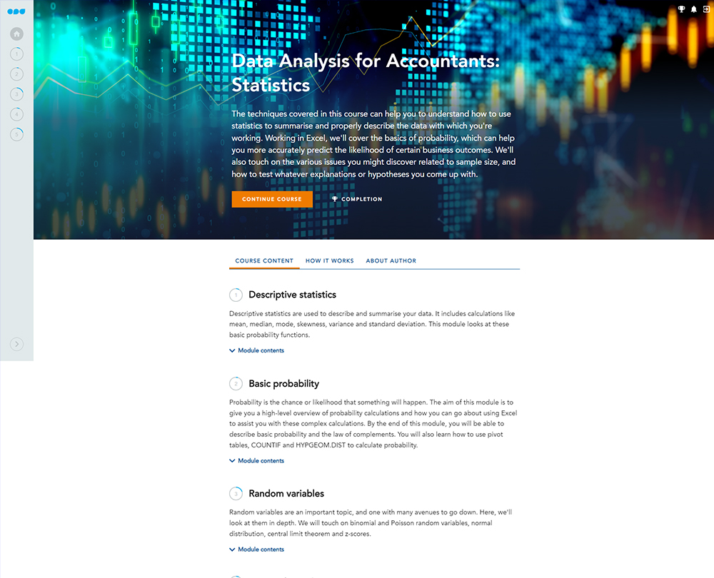 As accountants, we are all familiar with Excel. However, in a dynamic and ever-changing world, we need to be smarter about how we use the tools we have at our disposal. Using statistics and probability in Excel can help you to enhance your role as an accounting and finance professional. The techniques covered in this course can help you to understand how to use statistics to summarise and properly describe the data with which you’re working.