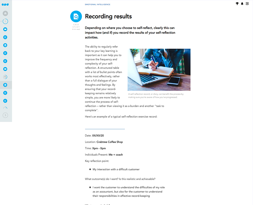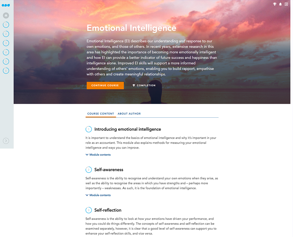 This course will guide you through the basics of EI and identify the role your emotions have on your performance. It looks at how you can improve your EI through self-awareness and self-reflection. Once we have a better understanding of ourselves, we can understand the emotions and build rapport with those around us, helping to create and sustain professional relationships.
