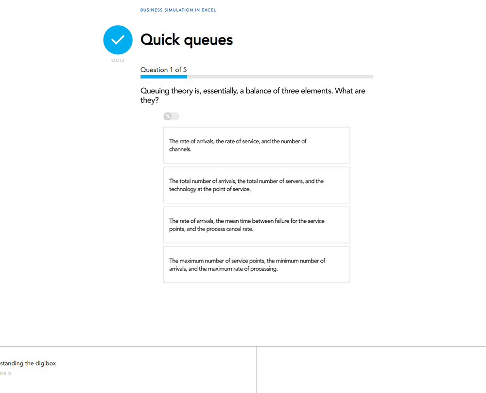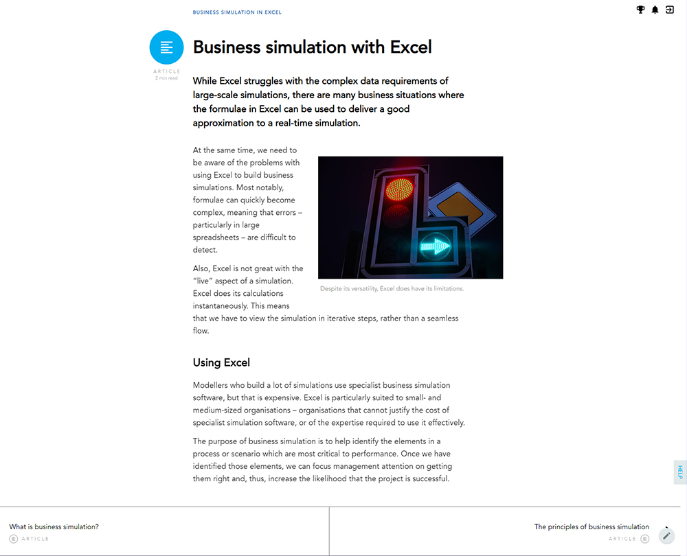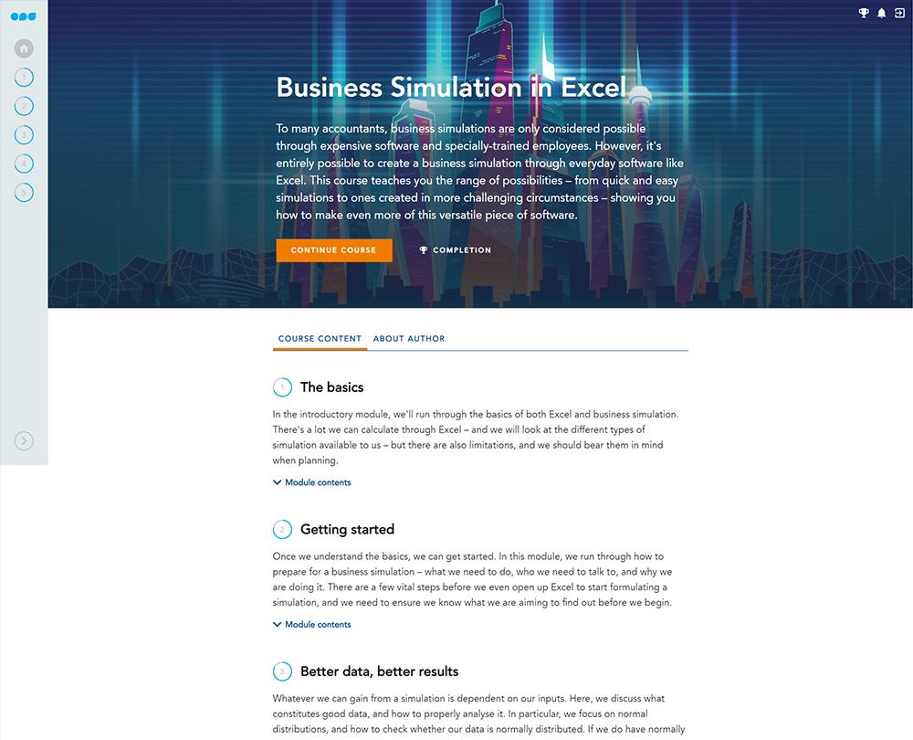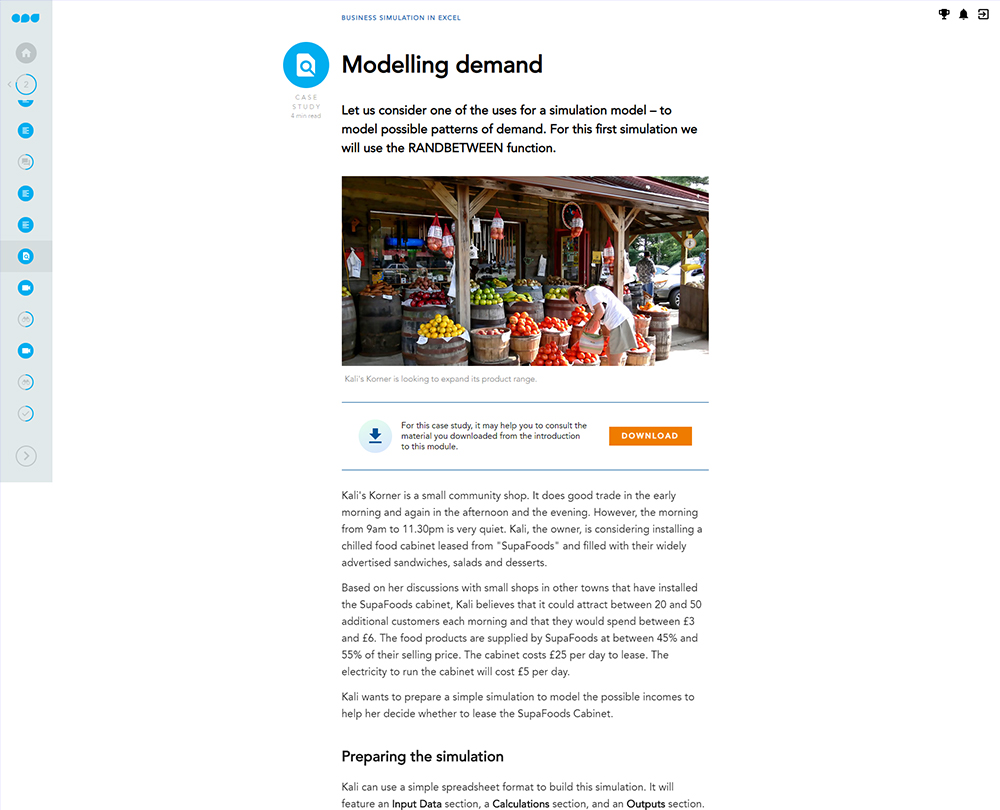 This course takes you through the basics of modelling and business simulation in Excel, and guides you through building some of the illuminating options available to you. It also looks at the importance of collecting good data for analysis and explores how to set up queuing simulations and financial models to aid decision making.