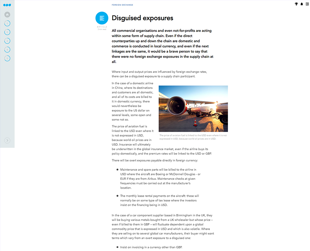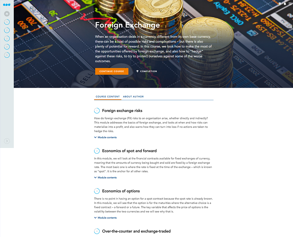 Familiarise yourself with what the complex world of foreign exchange means for your organisation. Use this course to understand how to hedge risk to protect your organisation, and gain an awareness of the opportunities offered by foreign exchange.