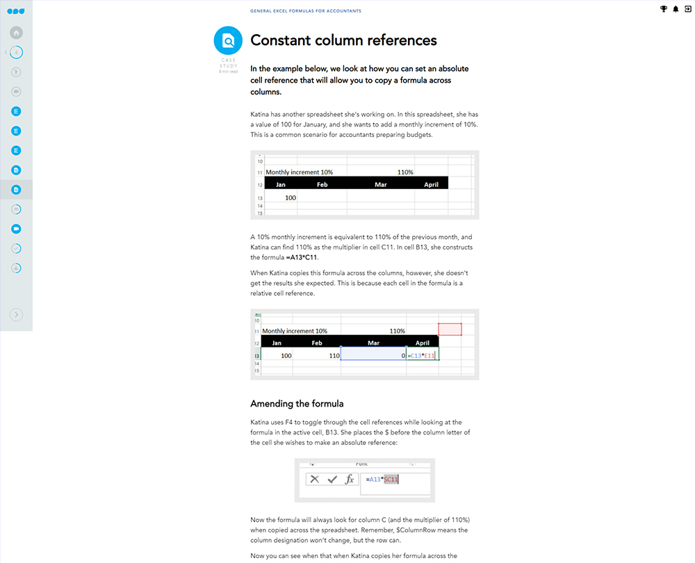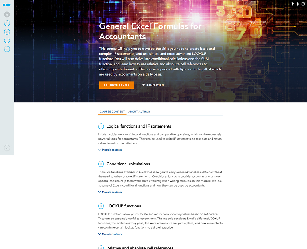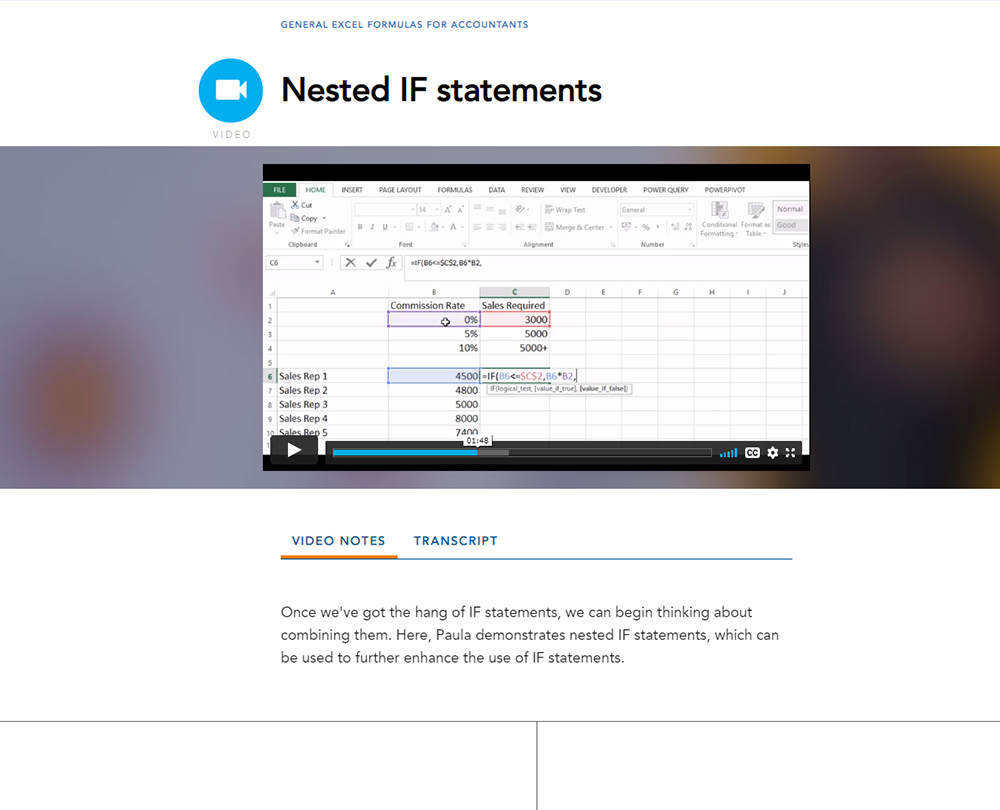 Designed specifically for accountants, this course enables you to create basic and complex IF statements and use various LOOKUP functions. It also explains how to use conditional functions, relative and absolute cell references to write formulas efficiently.