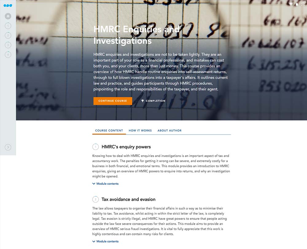 This course looks at how HMRC handle routine enquiries into self-assessment returns, through to full blown investigations into a taxpayer’s affairs. It outlines current law and practice, and guides participants through HMRC procedures, pinpointing the role and responsibilities of the taxpayer, and their agent.