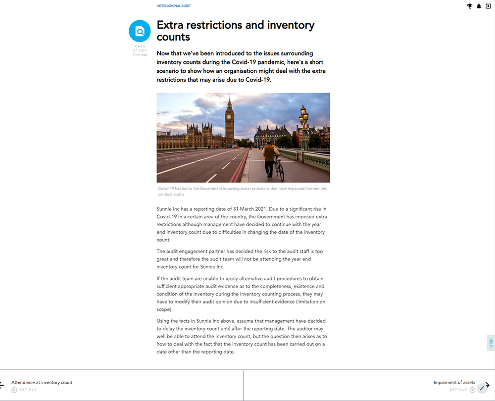 This course will keep you up to date on all the key changes in international auditing and the associated standards. Familiarise yourself with the procedures involved in obtaining auditing evidence, the key things to remember when finalising audits and issues that should be considered when delivery an opinion in the auditor’s report.