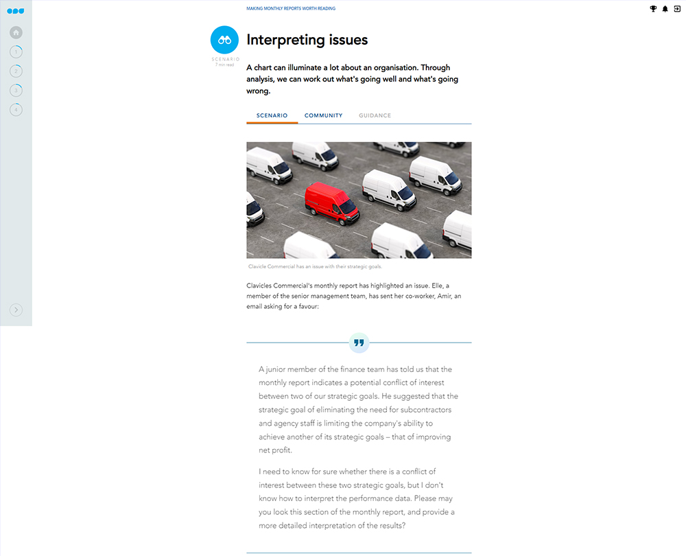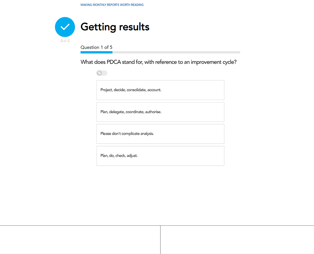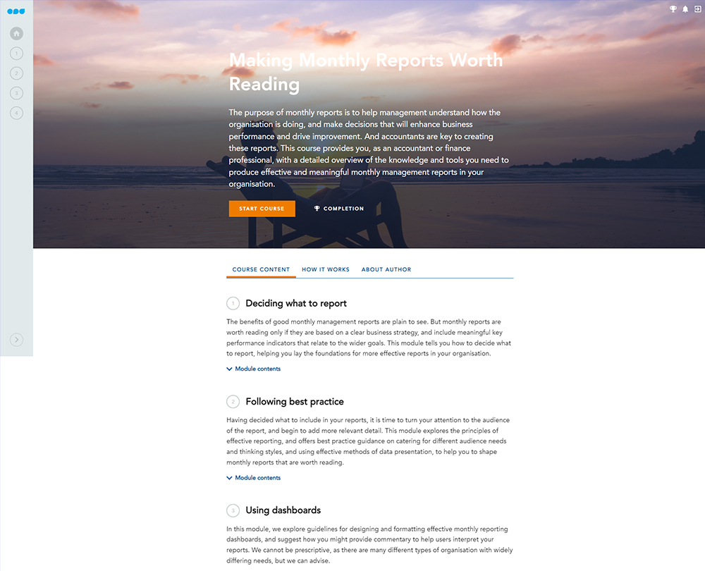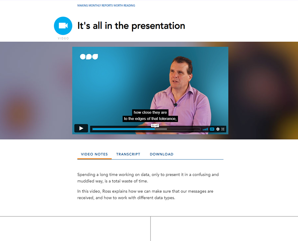 World class finance functions produce monthly reports that managers actually read. This course enables you to delight your audience by setting clear objectives, creating compelling visuals and creating monthly reports that drive business improvement.