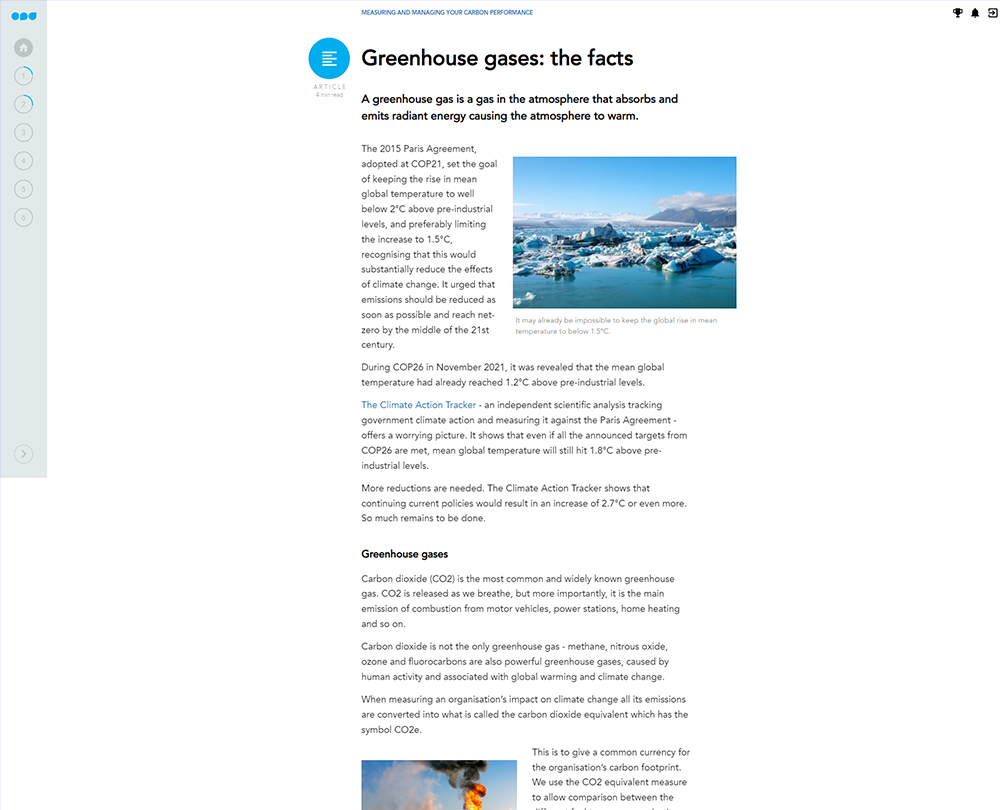 Consumers, employees and major investors are increasingly choosing climate friendly brands. This course explains how a rigorous approach to carbon performance management will enable you to measure your organisation’s carbon emissions and understand how to manage and reduce your carbon footprint.