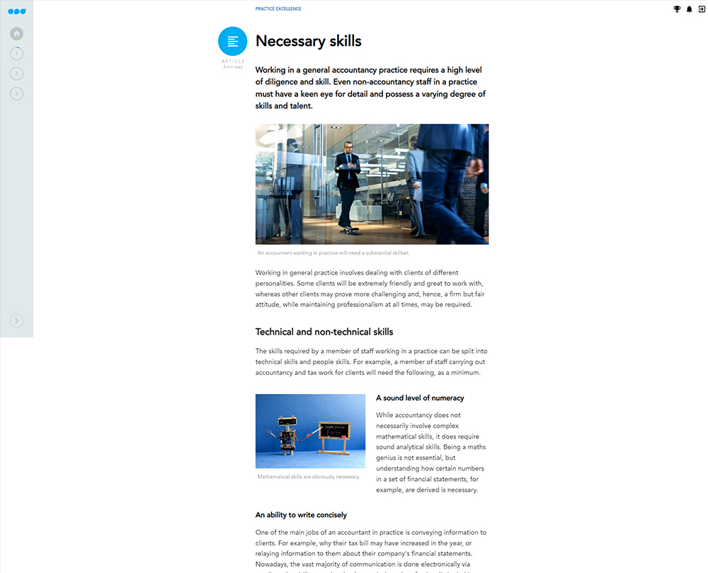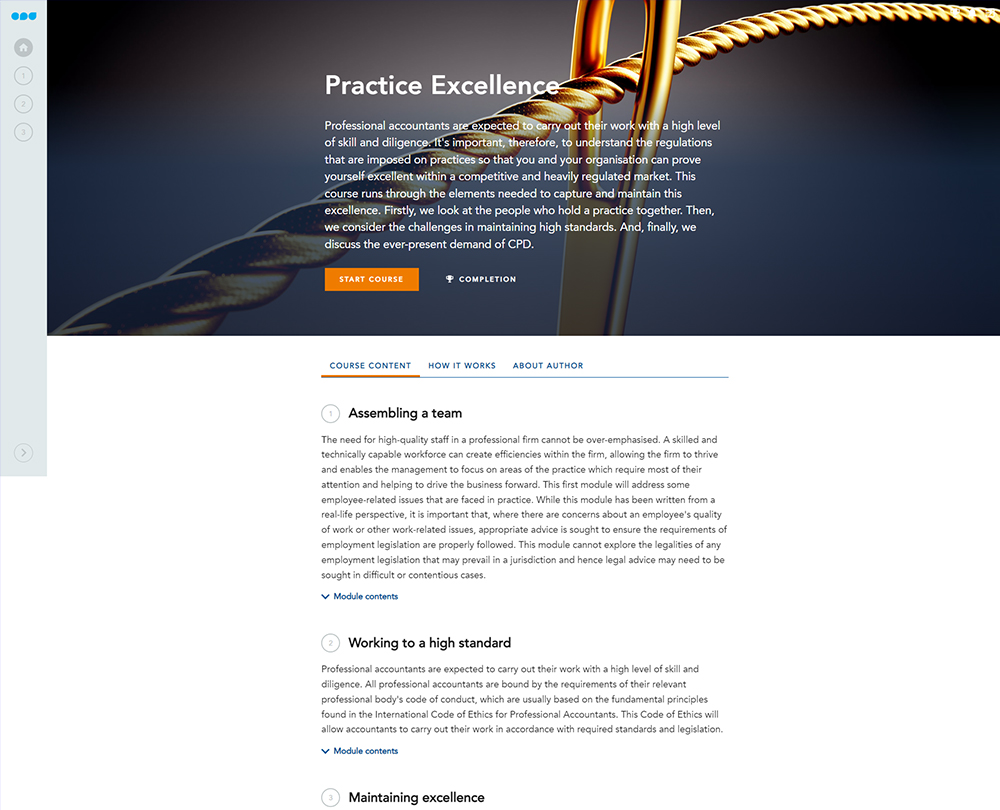 Professional accountants are expected to work with a high level of skill and diligence. This course looks at what is needed to develop and maintain this excellence, from the team you assemble, the challenges of maintaining high standards and the rewards of good CPD.