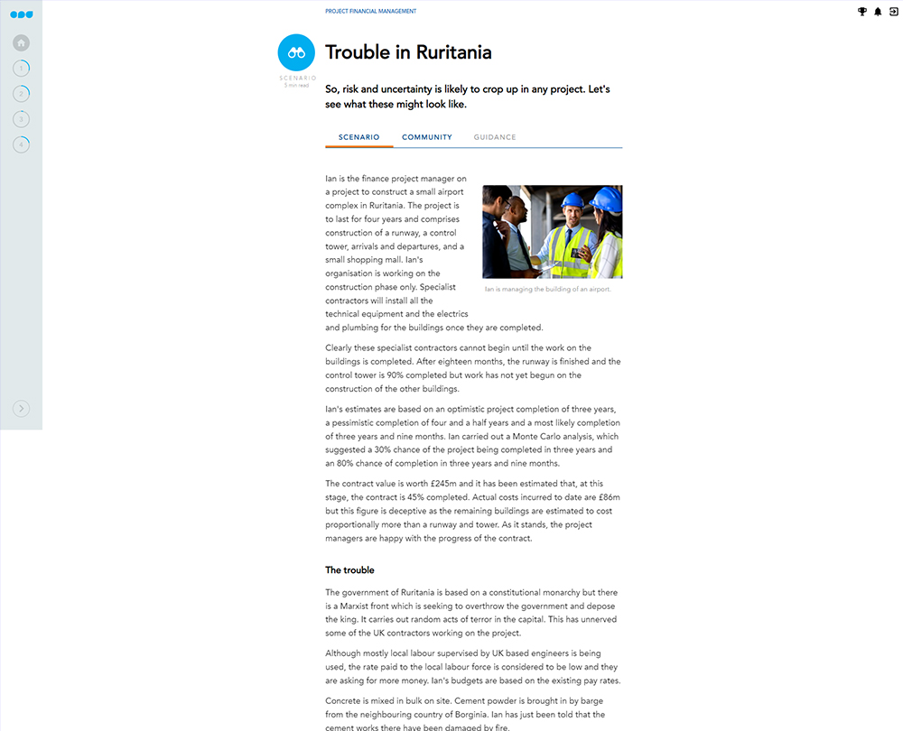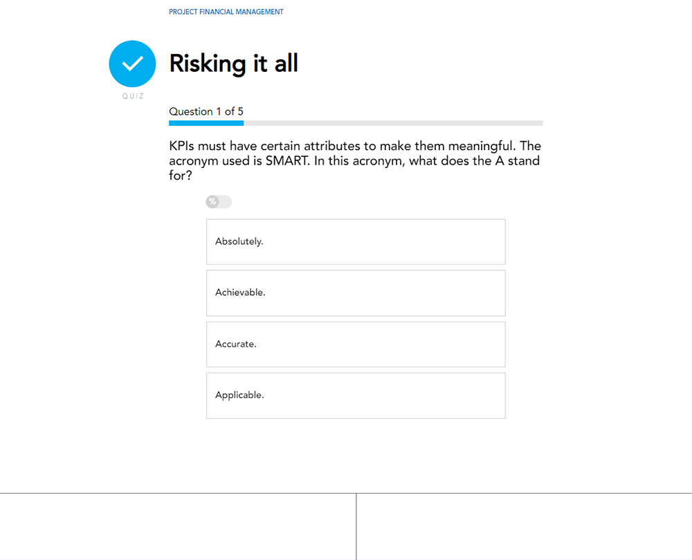 This course provides an overview of the role and responsibilities of a project finance team throughout the different stages of planning and implementing a project. From securing the right documentation and managing contracts to effectively managing time, risk, and uncertainties of a project, discover techniques that are useful to the project finance team.