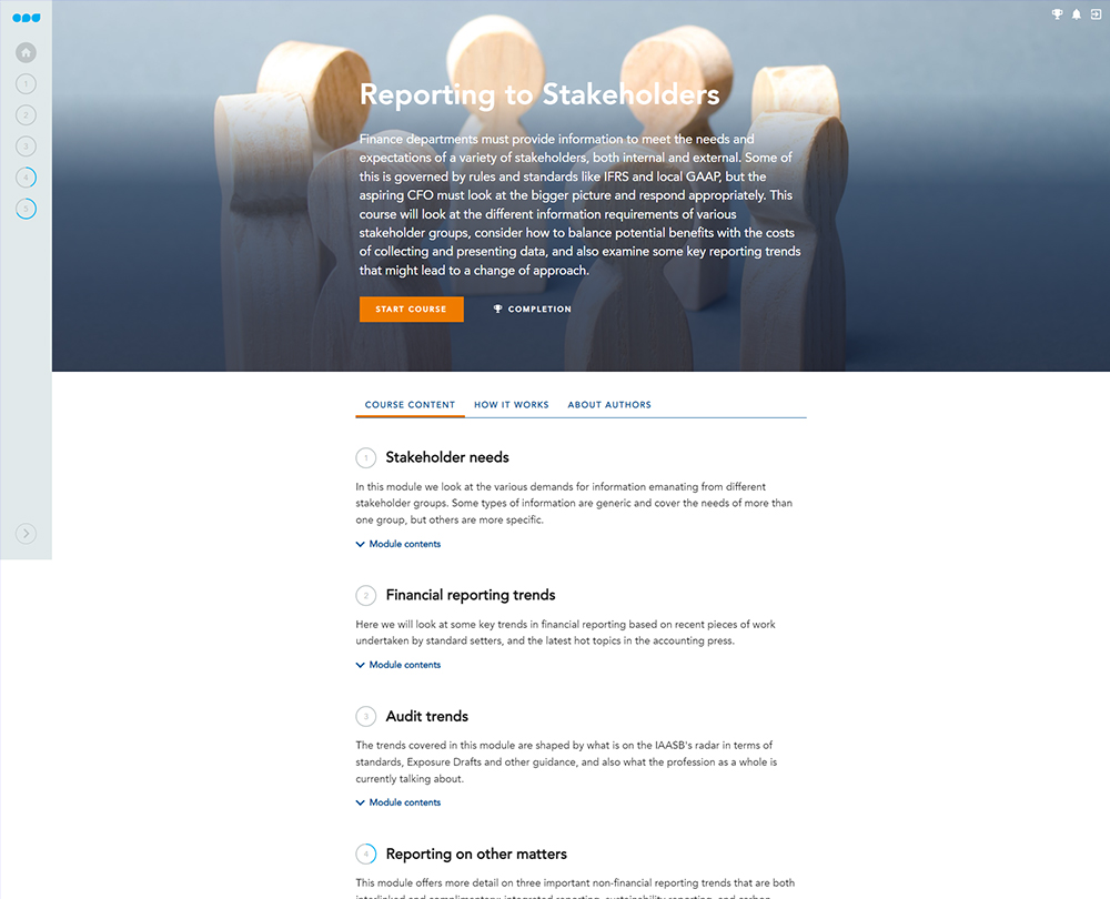 This course discusses how to balance the potential benefits gained from providing information, with the costs of collecting and presenting it. It will help you to futureproof your organisation’s approach by covering some key financial reporting, audit and non-financial reporting trends. It also looks at how to provide context for your financial statements and forward-looking information to your stakeholders.