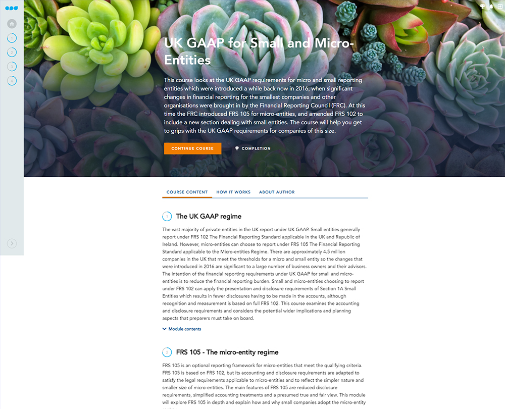 This course looks at the UK GAAP requirements for micro and small reporting entities. You’ll examine the accounting and disclosure requirements and the wider implications and planning aspects, ensuring a smooth transition to a different regime.