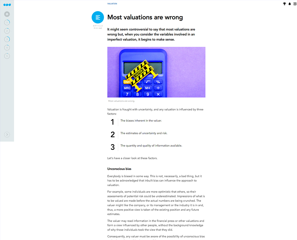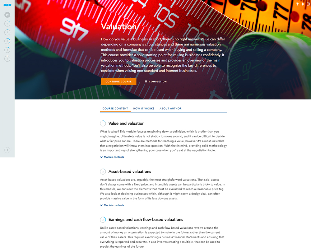 This course introduces valuation processes and provides an overview of the main methods involved. You’ll explore the use of asset-based, earnings and cash flow-based valuations as well as the complexities involved with non-standard and internet-based businesses.